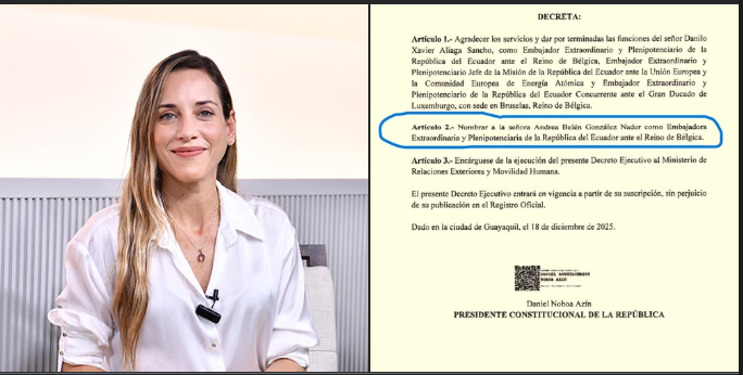 ANDREA GONZÁLEZ ES NOMBRADA EMBAJADORA DE ECUADOR EN BÉLGICA.-